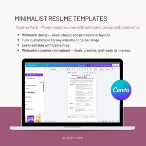 Elevate your job applications with this set of 5 minimalist resume templates. Designed for clarity and professionalism, each layout keeps the spotlight on your experiences and skills — no photo included. With easy editing in Canva’s free account, you can fully customize fonts, colors, and sections to reflect your personal brand.