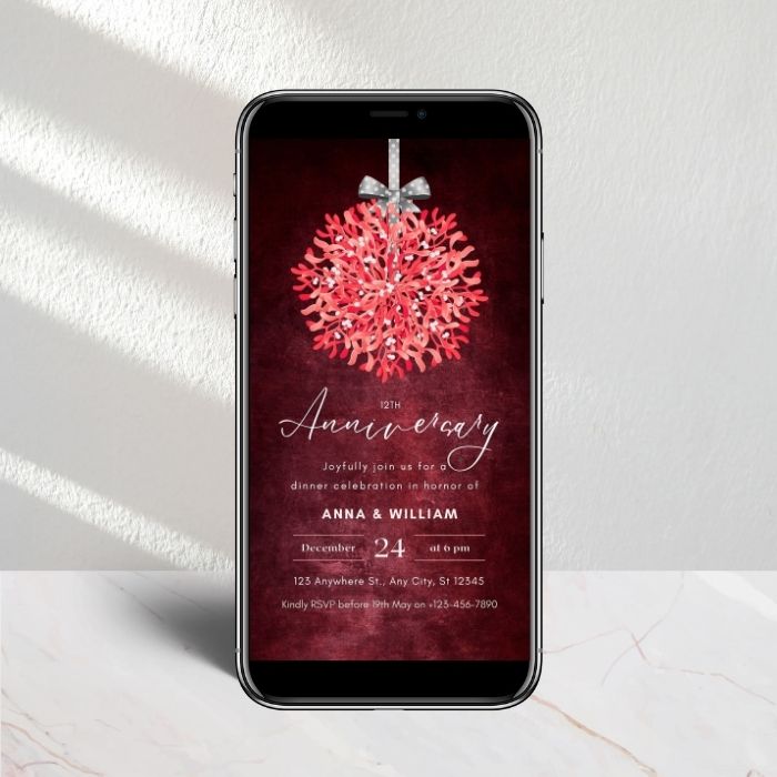 Anniversary Invitation Template, Red Mistletoe Design, Editable in Canva