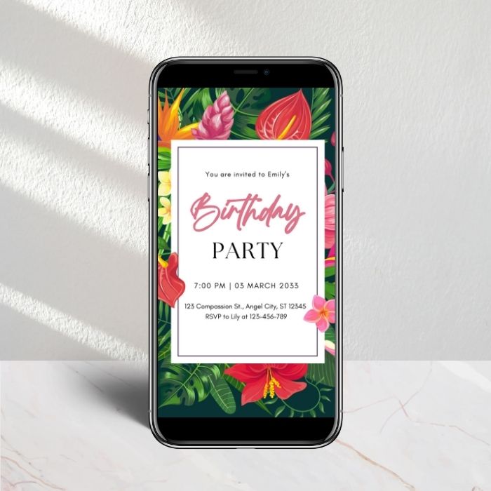 Birthday Invitation Template, Tropical Flower Frame | Editable in Canva