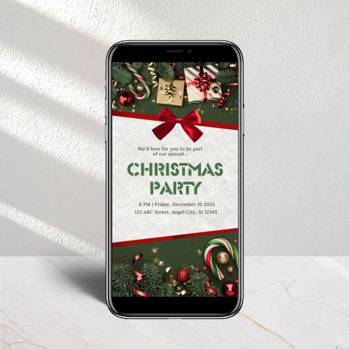 Christmas Invite Template, Gifts and Green Background | Editable in Canva