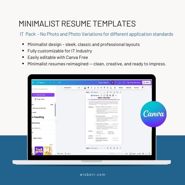 - Download – After purchase, you’ll instantly receive a link to your set of 5 minimalist resume templates. This link opens the editable designs in Canva, exactly as shown in the live preview.
